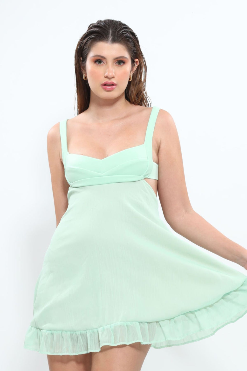 O modelo curto com barra de babado delicado adiciona movimento e fluidez, enquanto os recortes laterais sutis deixam a produção mais moderna e charmosa. Com busto estruturado e alcinhas largas, ele proporciona conforto, segurança e estilo em um só look.